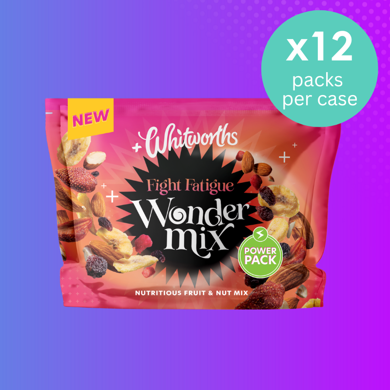 This 50g fruit + nut mix boosts your day with the power of micro-nutrition! Fight Fatigue Wondermix is perfect for heavy work loads and midday munching, naturally bursting with: MANGANESE. Scientifically proven to contribute to normal energy metabolism – all to help you fight fatigue.
