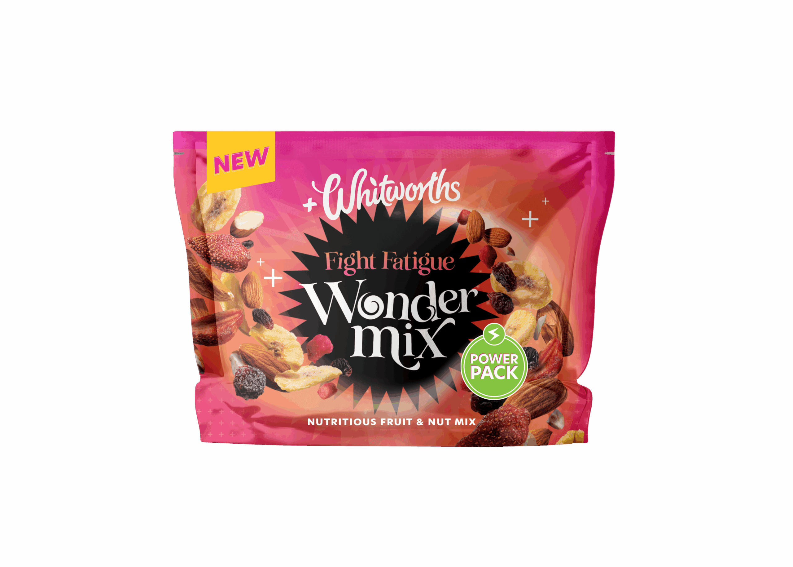 This 50g fruit + nut mix boosts your day with the power of micro-nutrition! Fight Fatigue Wondermix is perfect for heavy work loads and midday munching, naturally bursting with: MANGANESE. Scientifically proven to contribute to normal energy metabolism – all to help you fight fatigue.